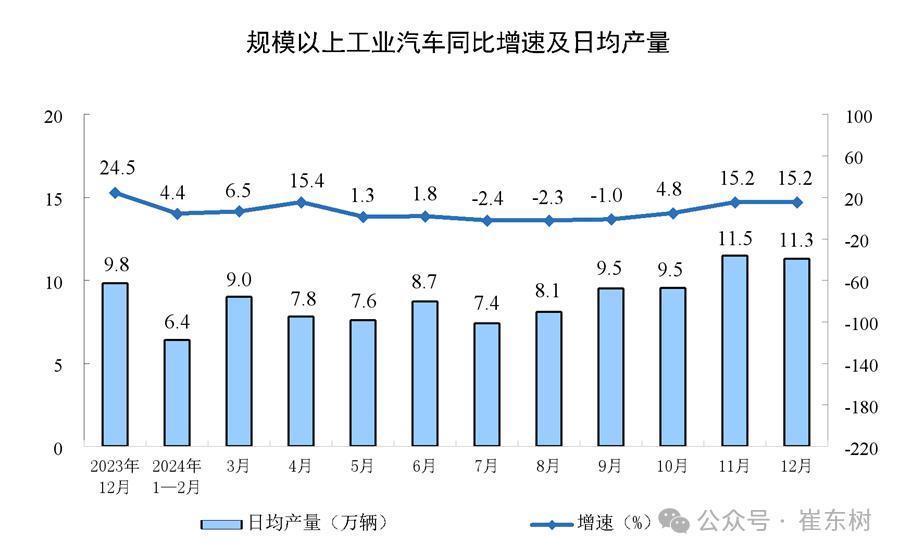 分产品看, 2024年12月份,汽车日均11.3万辆,增15.2%,考虑到2023年12月基数较高,今年增速的表现很强。